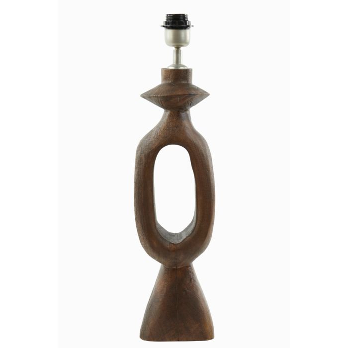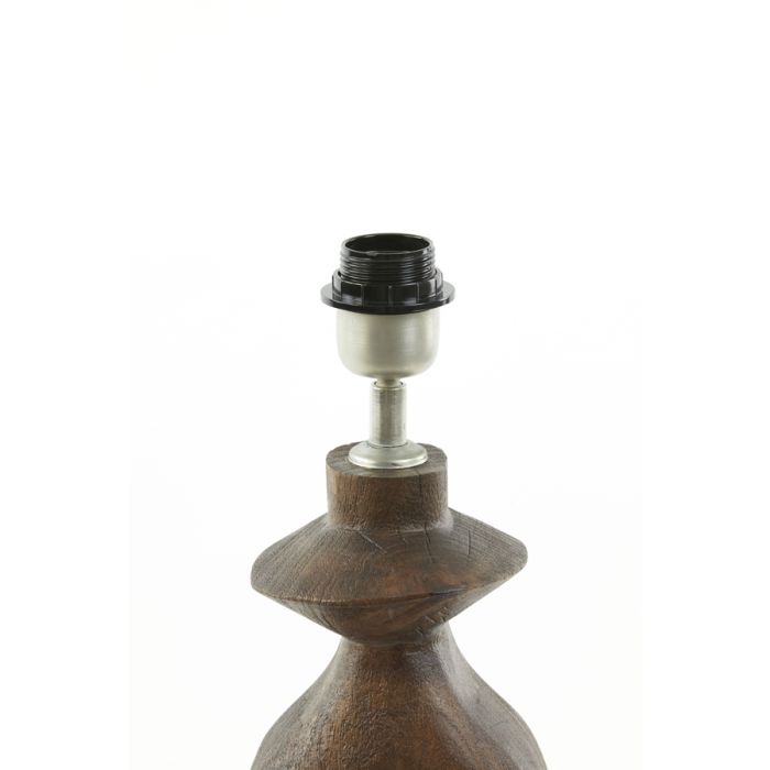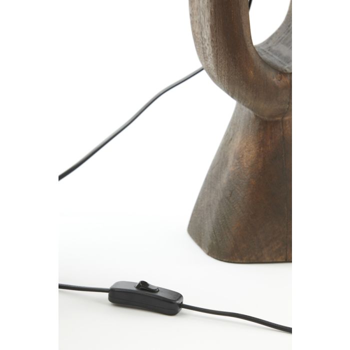 Lámpara de sobremesa fabricada en madera en color marrón. Casquillo para bombilla E27, bombilla no incluida.