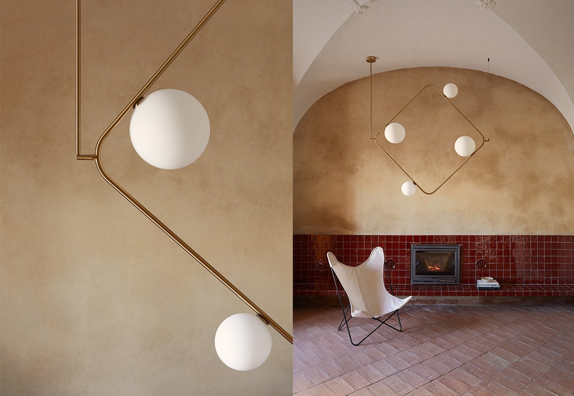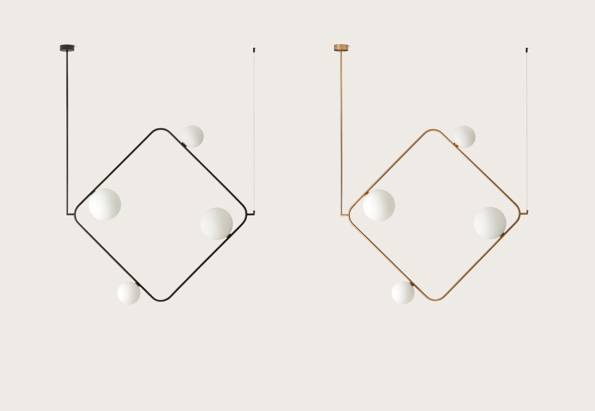 Lámpara de techo de diseño Gruye disponible en dos colores, negro mate y oro envejecido, y con las tulipas de distintas medidas y modelos a elegir.