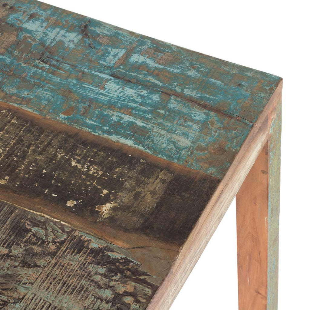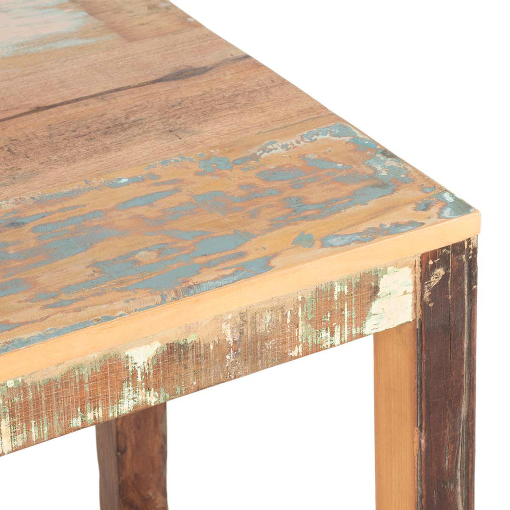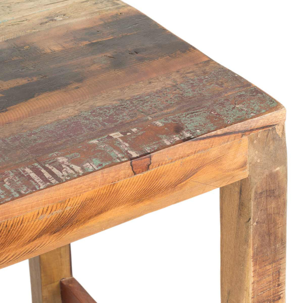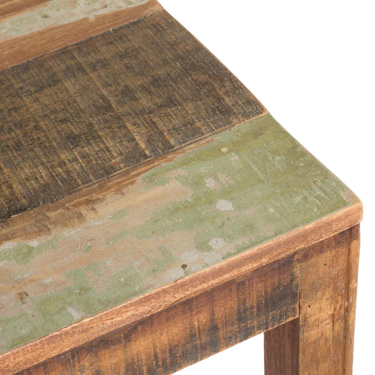 Esta mesa auxiliar cuadrada está fabricada en madera maciza con efectos de decapado, un acabado que resalta su carácter único y artesanal. Su belleza destaca en la variación de formas y tonalidades de la madera, obtenidas mediante un proceso manual y artesano que convierte cada pieza en un objeto singular lleno de personalidad. Es una pieza ideal para aportar calidez y autenticidad a salones dormitorios o rincones especiales, donde su textura natural y su acabado envejecido añaden encanto y elegancia de forma discreta. Fabricada íntegramente en madera maciza trabajada a mano, garantiza solidez durabilidad y un estilo atemporal perfecto para cualquier ambiente.