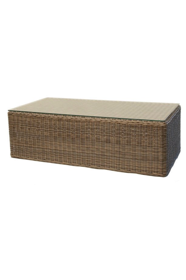 Mesa de centro exterior de ratán sintético color natural. Disponible en dos medidas diferentes