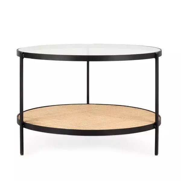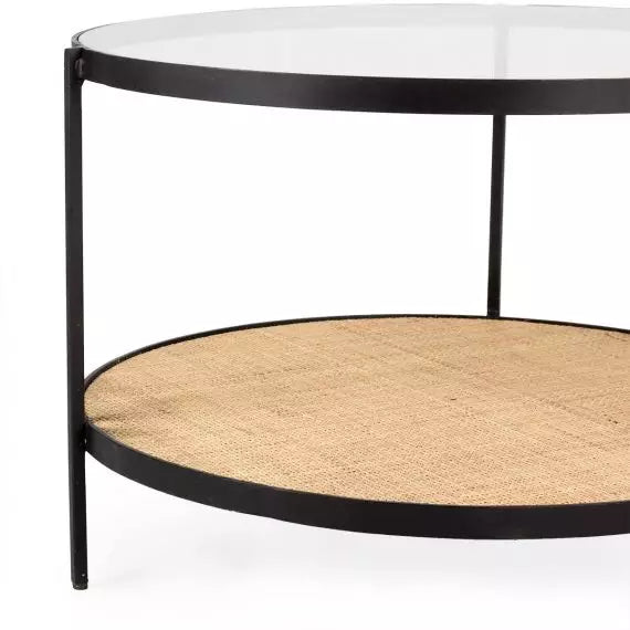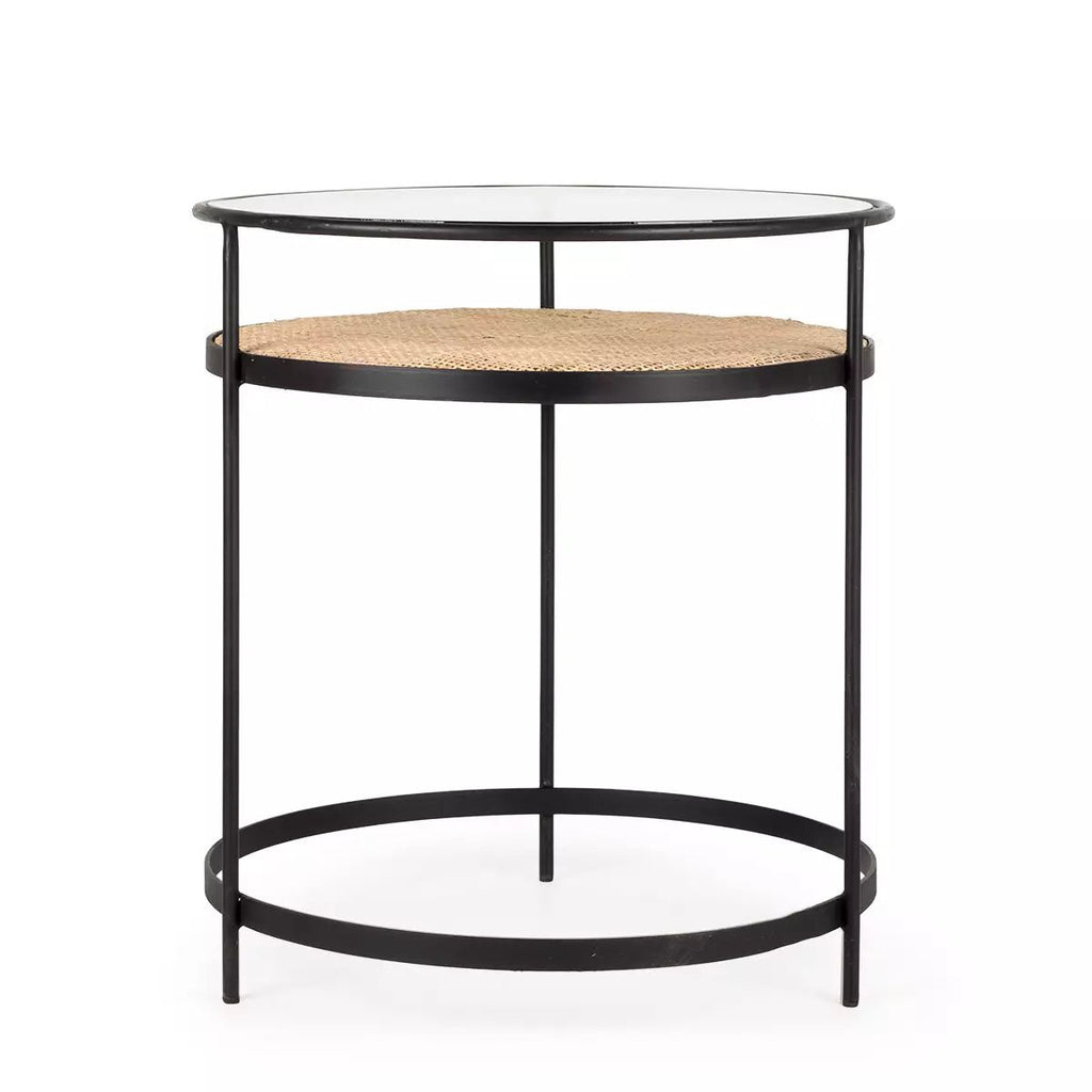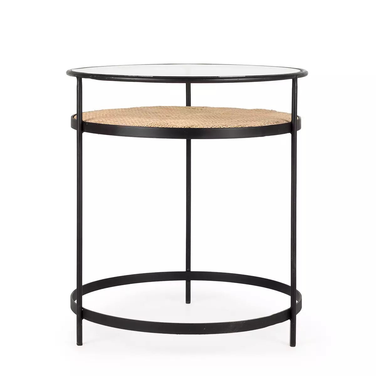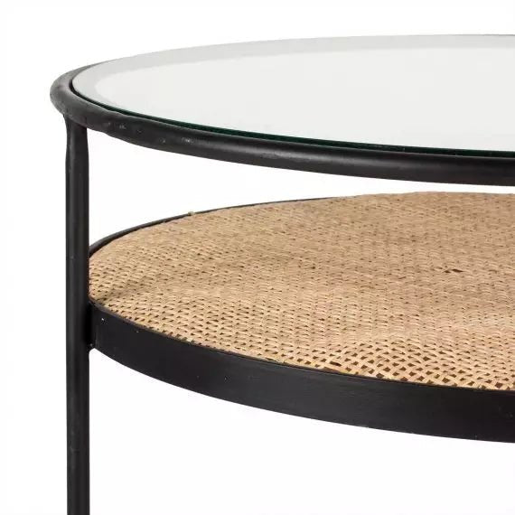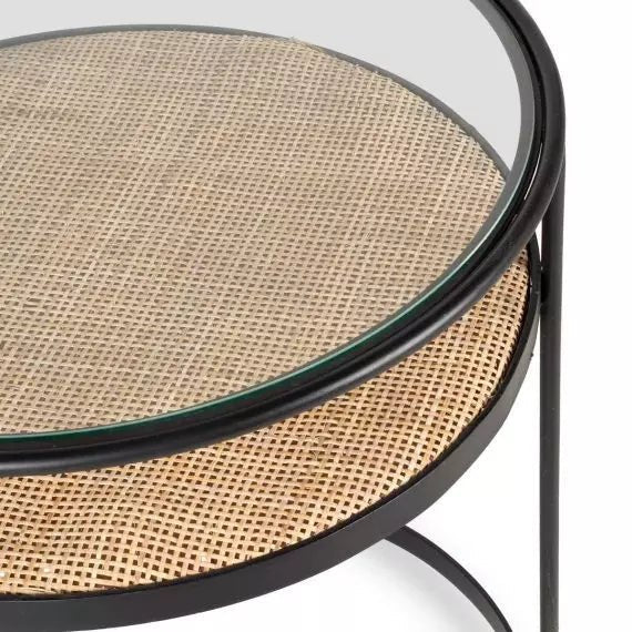 Mesas auxiliares Samir fabricadas en hierro combinado con ratán natural y cristal una nueva atrevida combinación de materiales que aporta dinamismo y elegancia a cualquier estancia.