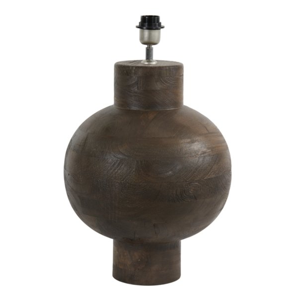 Pié de Lámpara de sobremesa fabricada en madera en color marrón. Casquillo para bombilla E27, bombilla no incluida.