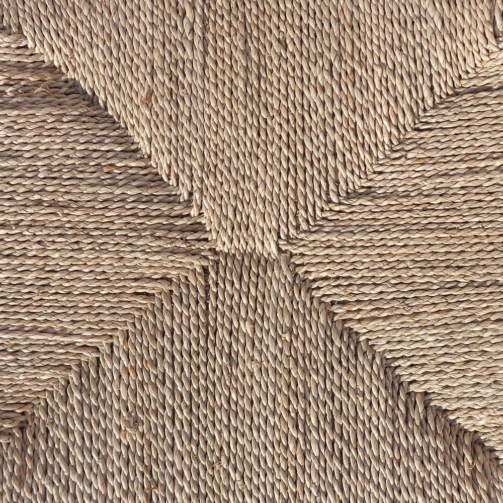 Silla fabricada en madera de teca color negro y asiento fabricado en fibra de banano color natural.