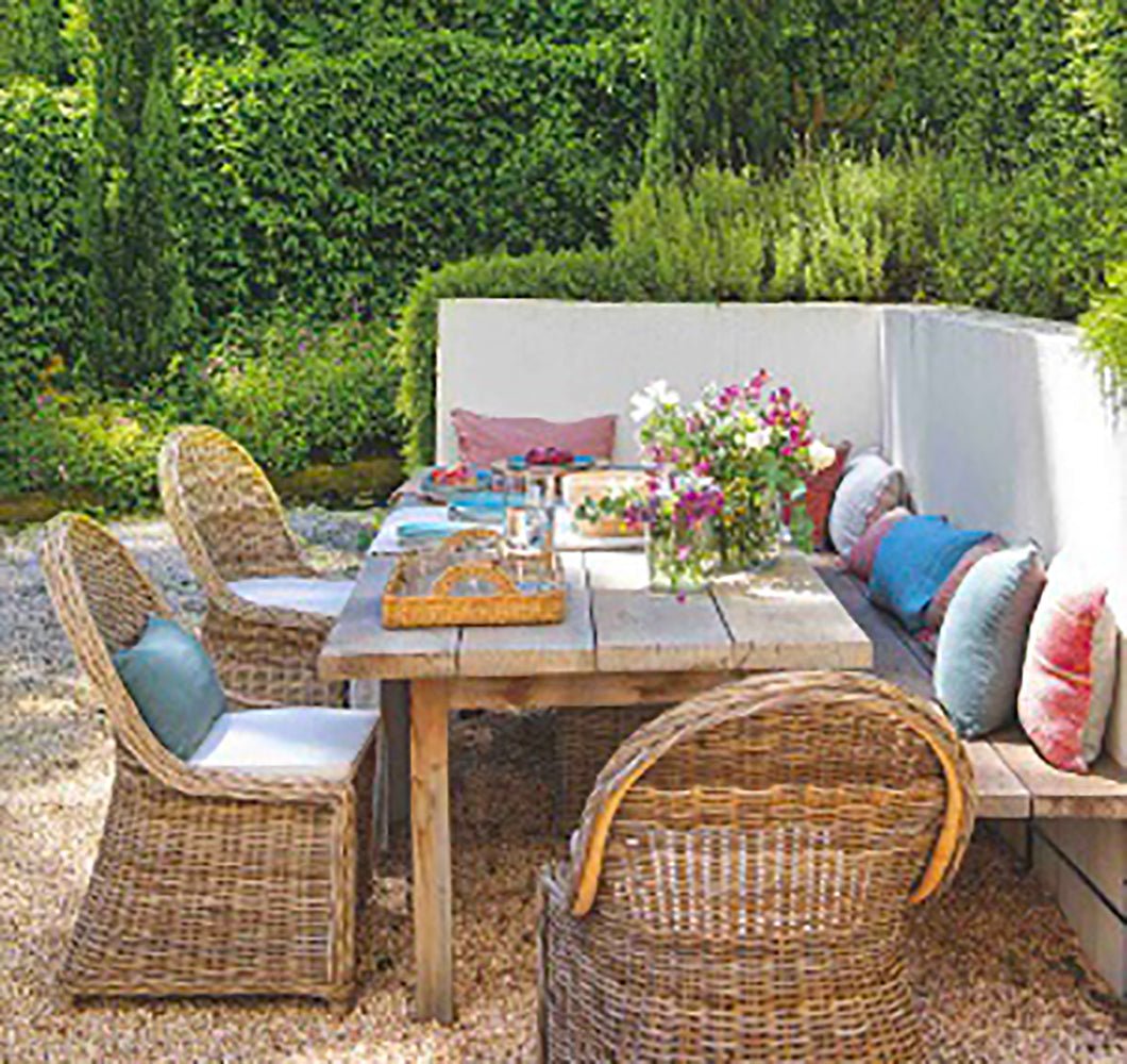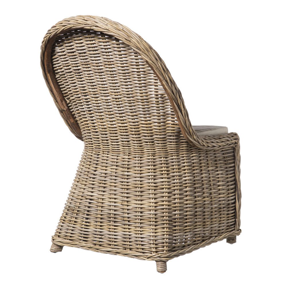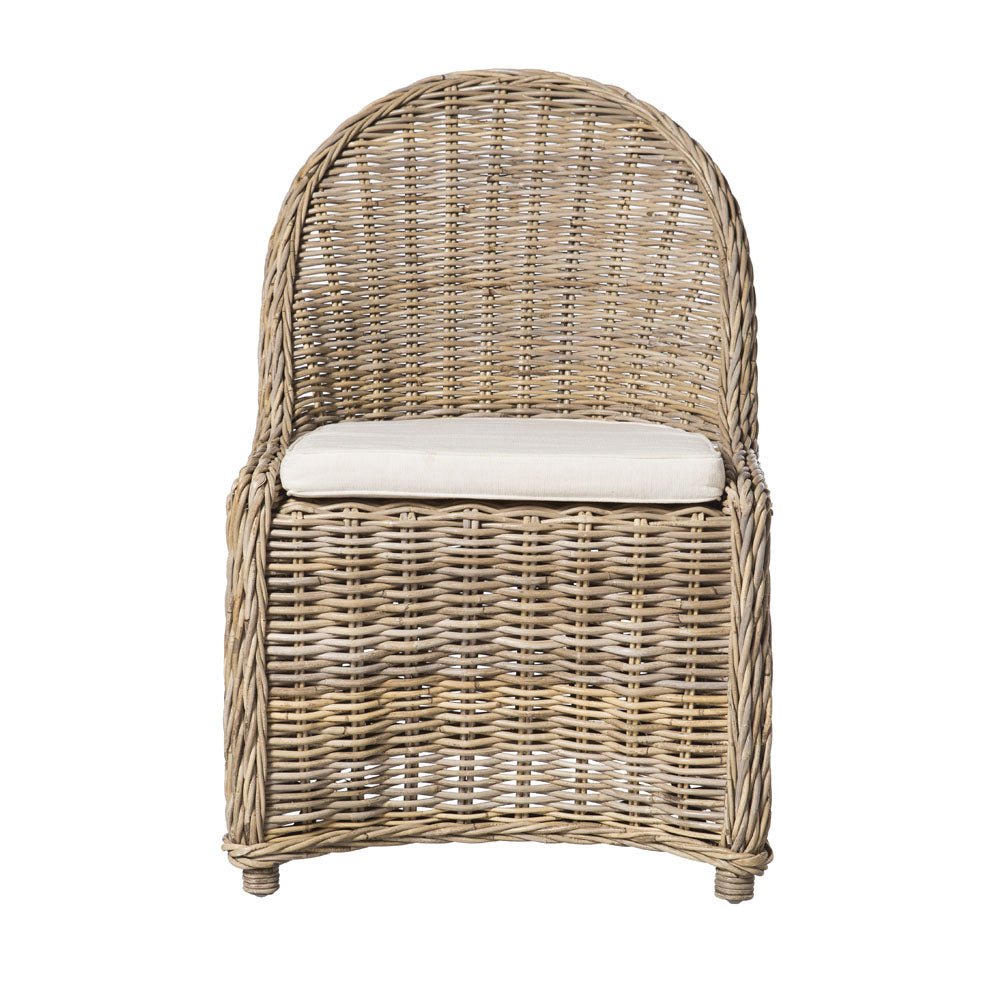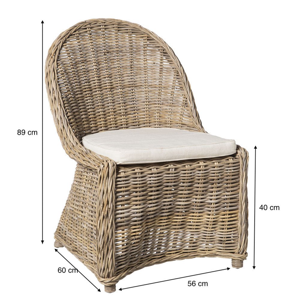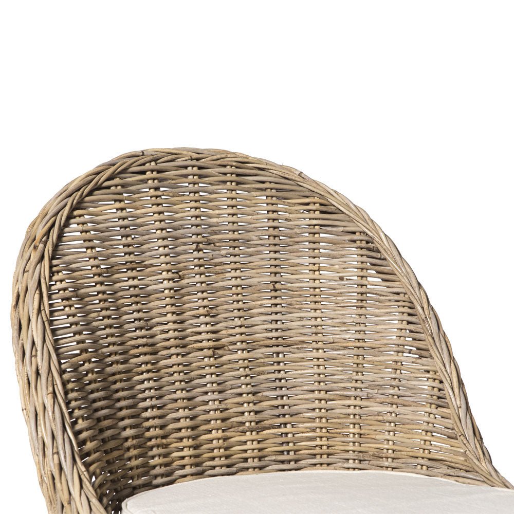 Precioso sillón fabricado en ratán en color natural con cojín blanco 100% de algodón desenfundable y cierre con cremallera con relleno 100% de poliéster.