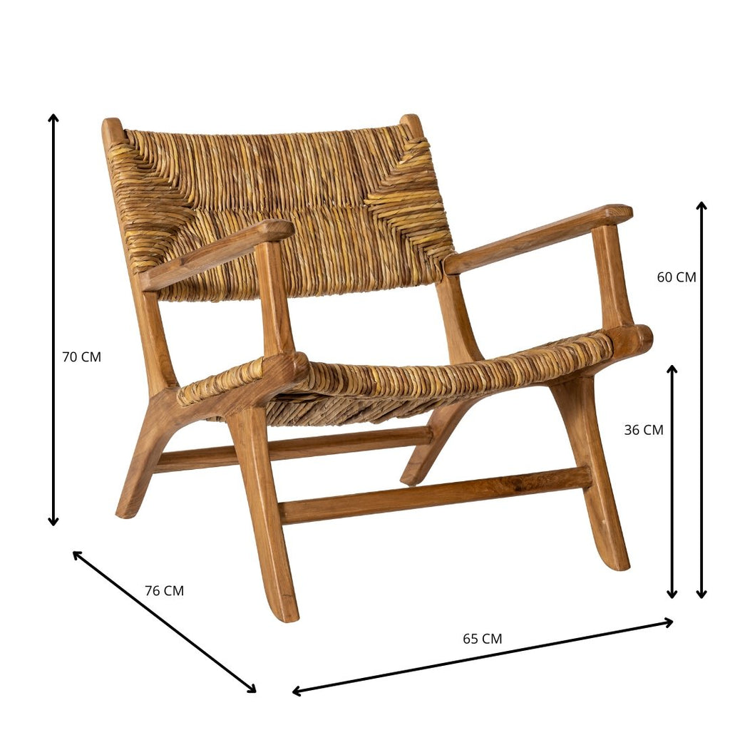 Precioso sillón con brazos fabricado en madera de teca y banano.