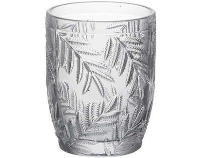 Set de 6 Vasos de vidrio de alta calidad en color rosado con detalles de hojas de palma en relieve.