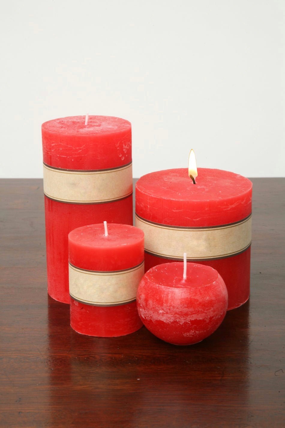 Vela rústica fabricada en parafina 100% con mecha de algodón 100% en color rojo.