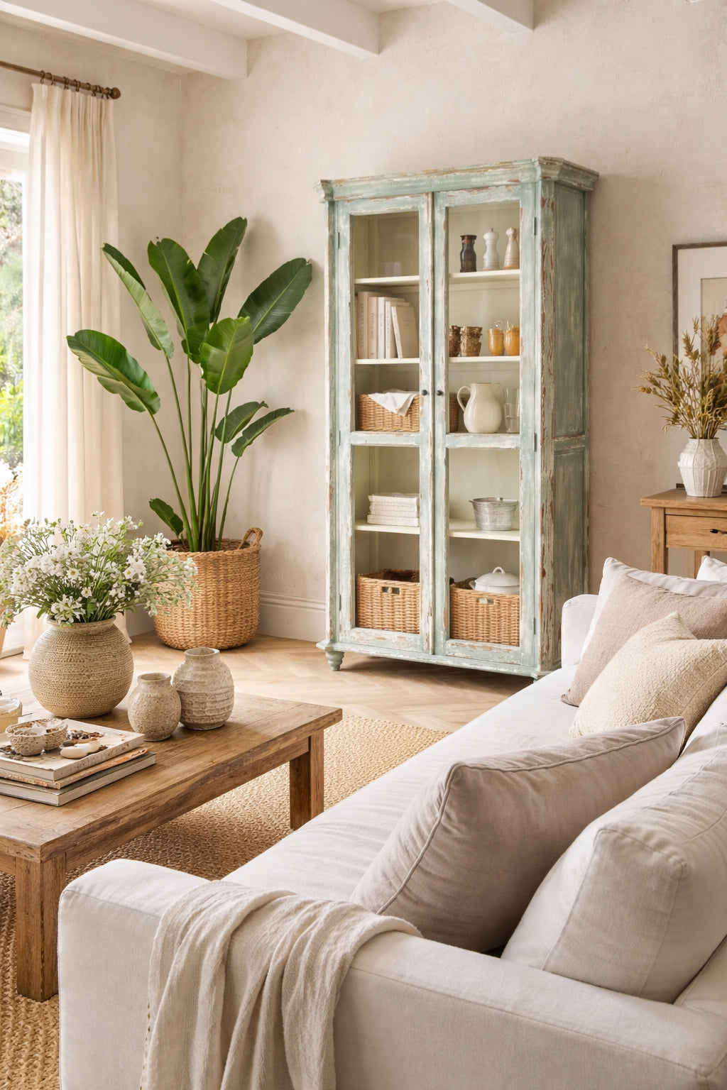 Además de su valor decorativo, es un mueble pensado para aportar capacidad de almacenaje manteniendo una estética ligera. Su combinación de materiales, proporciones y acabado la convierte en una vitrina ideal para ambientes acogedores, naturales y bien equilibrados.